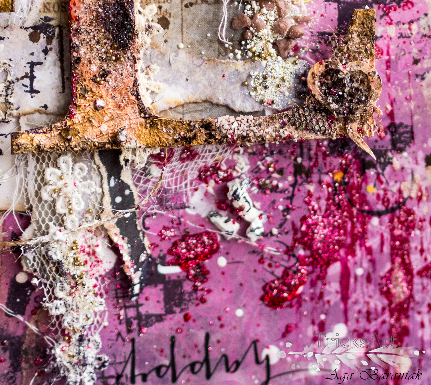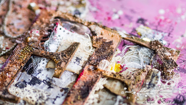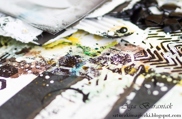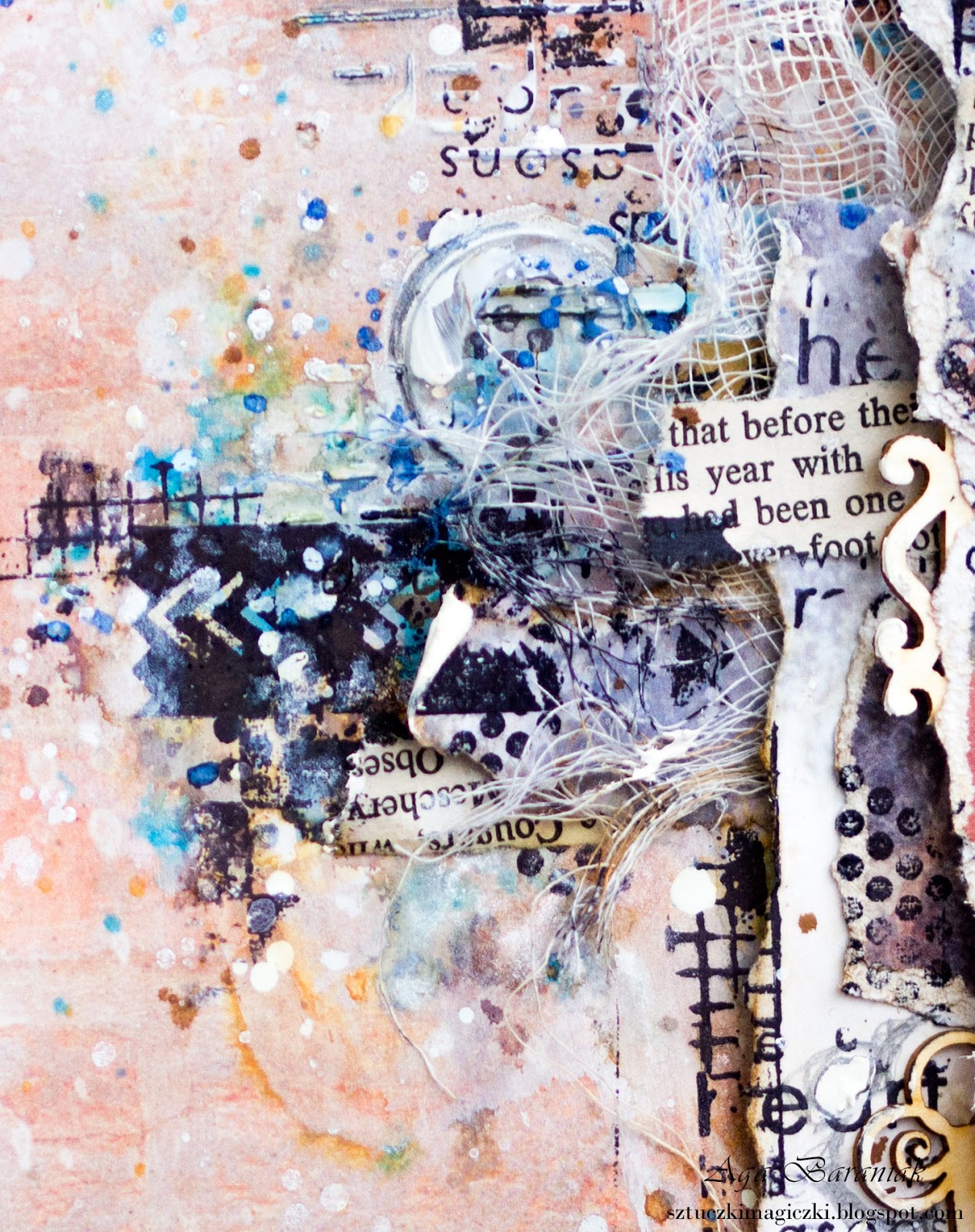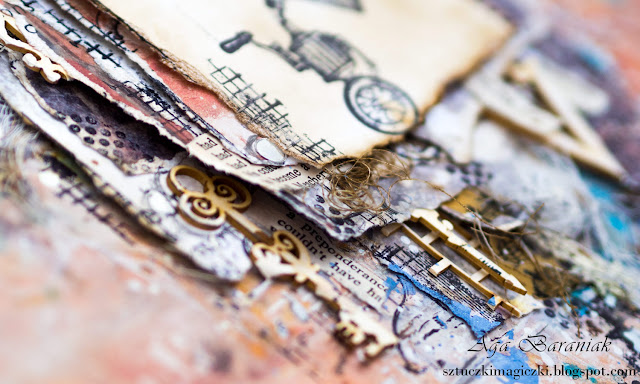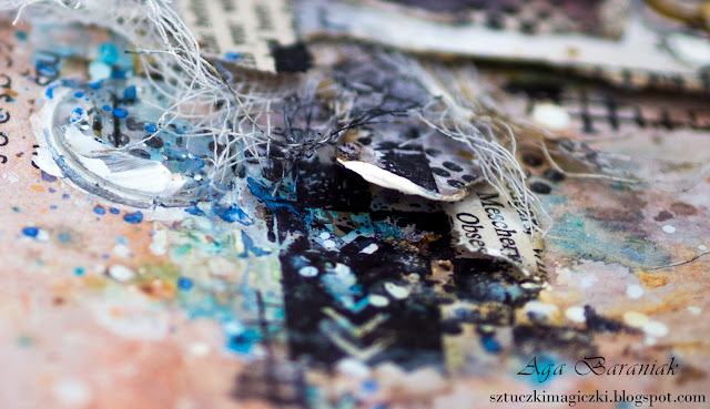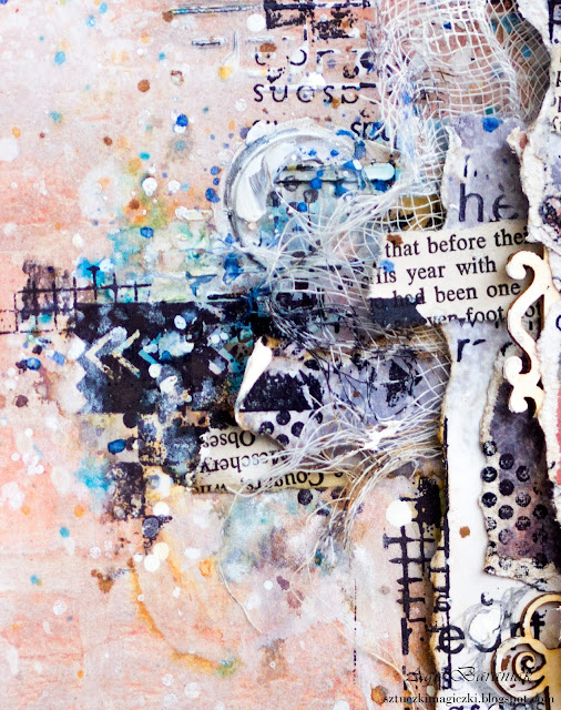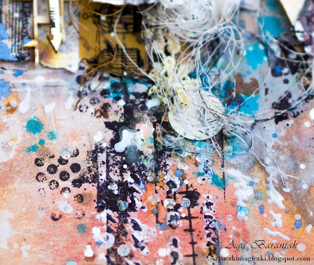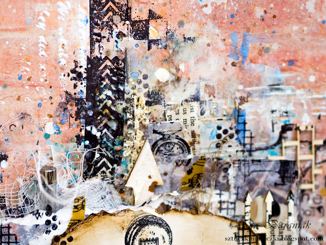 Na bazie papierów z mojej ulubionej kolekcji VENUS Josephine powstała praca, która zawiera dużo elementów, tekstur, skrawków papierów, mnóstwo stempli i chlapań.
