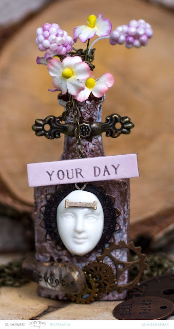 The last time I could scare someone a little with my canvas with legs, so today I prepared scrape in warm colors. A little more quiet and maybe universal.