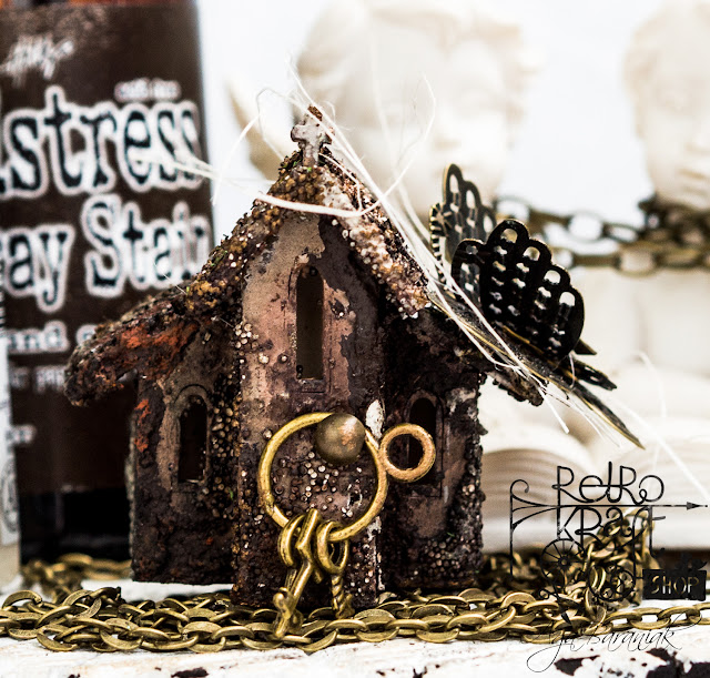 Po wyschnięciu ozdobiłam całość mgiełkami Distress, preparatem DecoArt, pastą o efekcie rdzy oraz Inką.